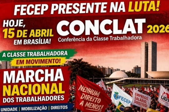 A Federação dos Empregados no Comércio do Estado do Paraná, por meio de seus filiados, está participando ativamente, ao longo deste dia 15 de abril, da Conferência Nacional da Classe Trabalhadora (CONCLAT 2026), realizada em Brasília (DF), integrando uma das maiores mobilizações nacionais e um marco histórico, em defesa dos direitos dos trabalhadores.